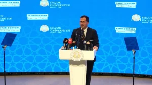 Selçuk Üniversitesi, Çevre, Şehircilik ve İklim Değişikliği Bakanı ve üniversitenin mezunlarından Murat Kurum’a fahri doktora unvanı takdim etti. Törende konuşan Bakan Kurum, “Bu unvan benim için bir madalyadır, ömrüm boyunca gururla taşıyacağım” dedi.